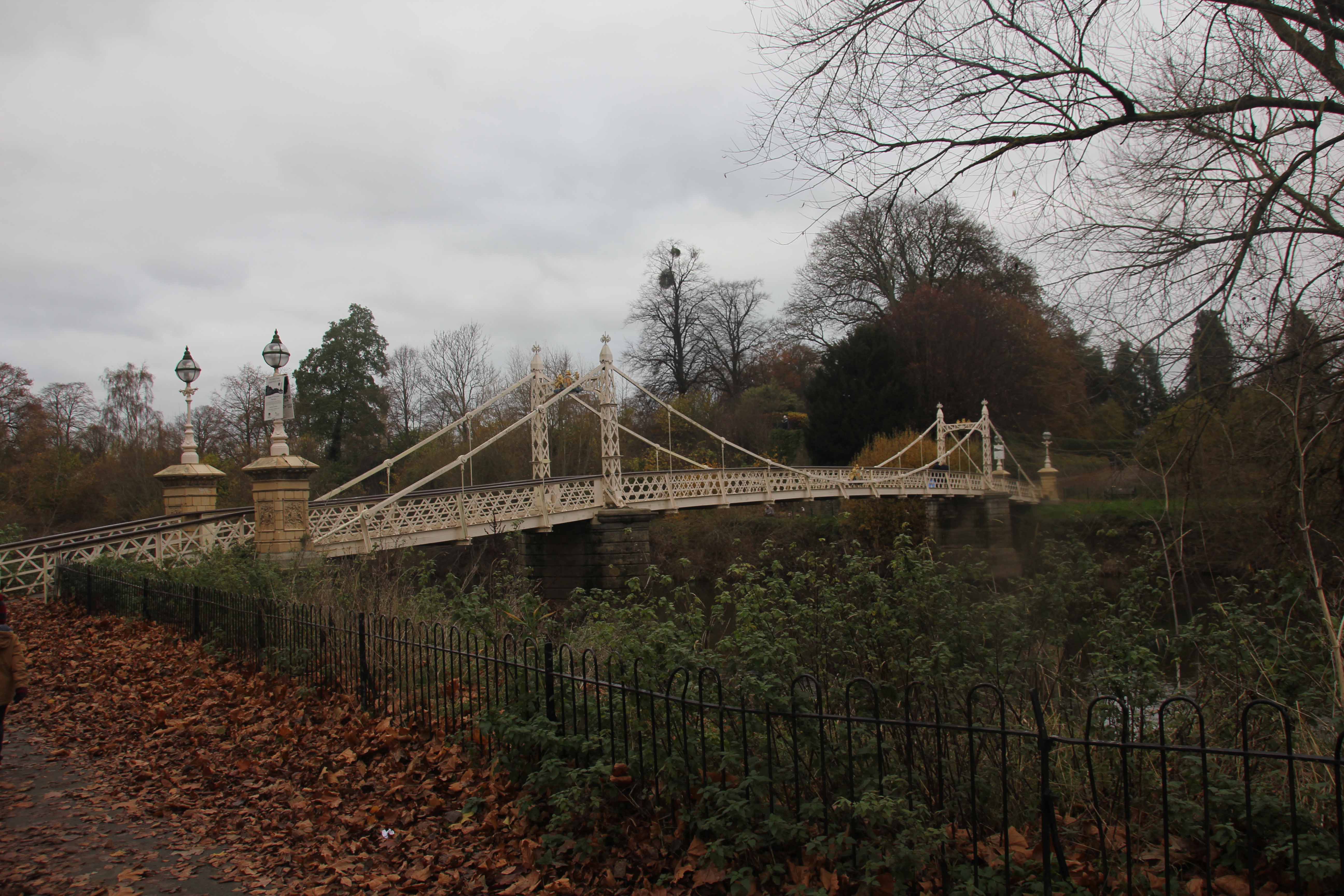 Gangbroen Victoria Bridge over elven Wye i Hereford (Foto: Terje Pettersen-Dahl, 27/11 2016).