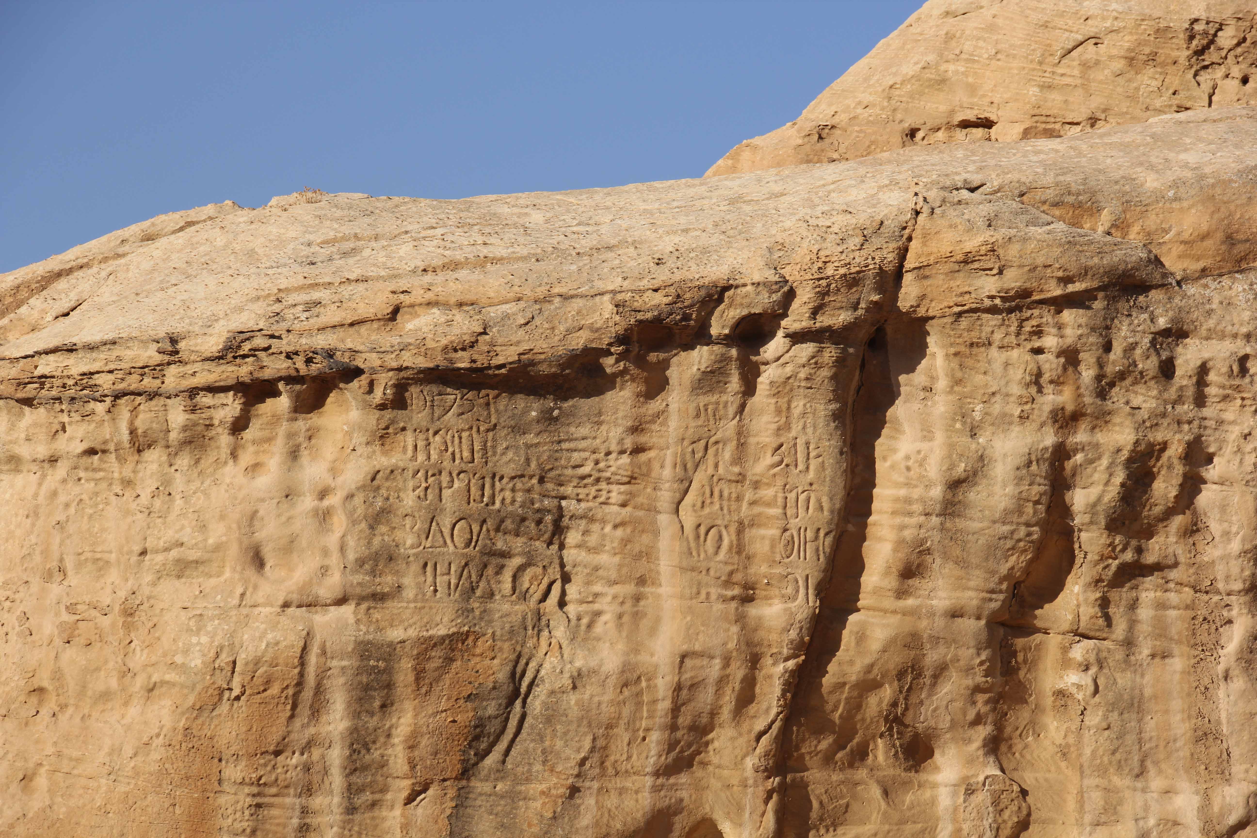 Innskripsjoner i fjellet ved inngangen til Petra. (Foto: Terje Pettersen-Dahl, 8/11 2015).