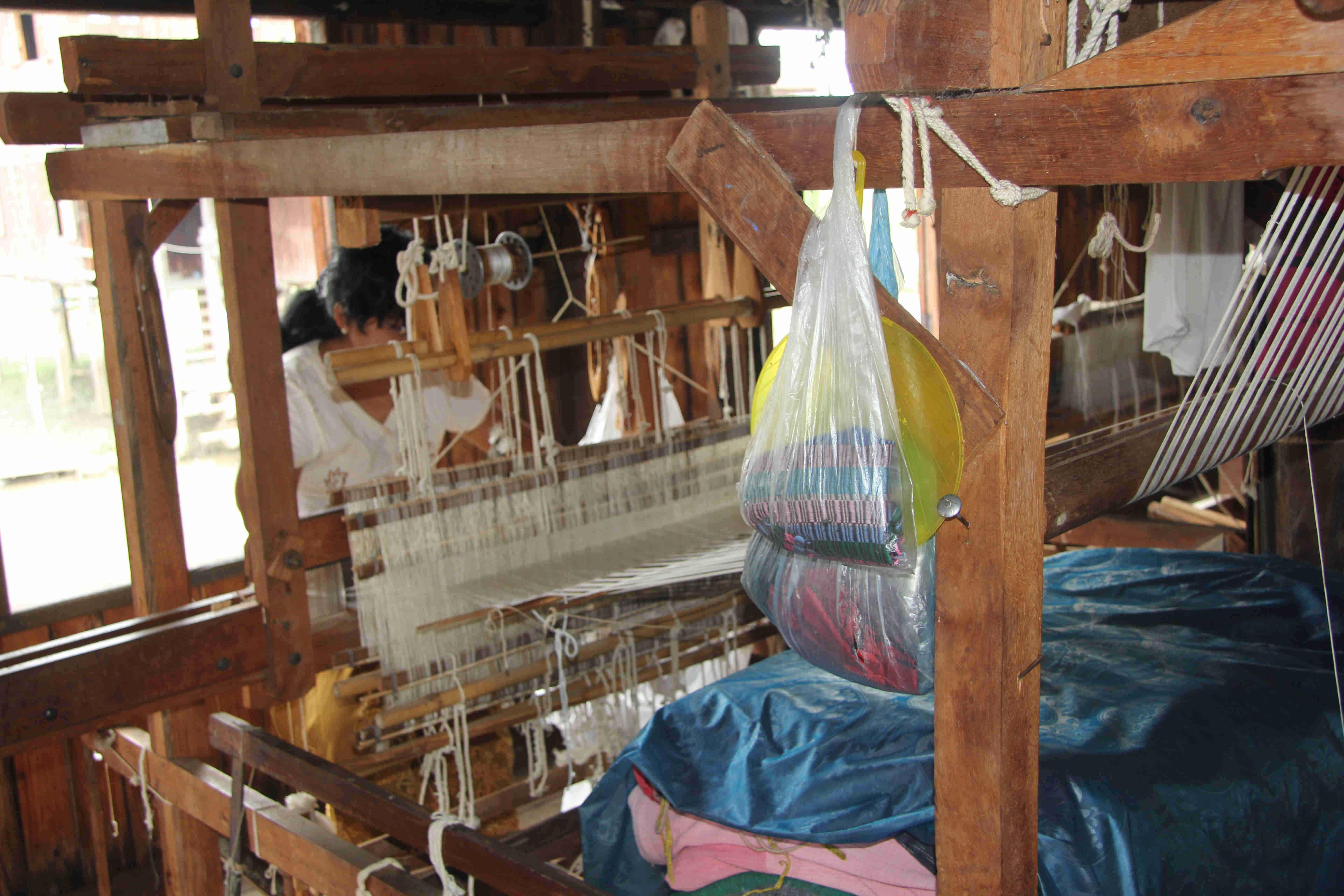 Besøk på Mya Setkyar veveri i kanalen ved Inle sjøen. (Foto: Terje Pettersen-Dahl, 6/3 2013).