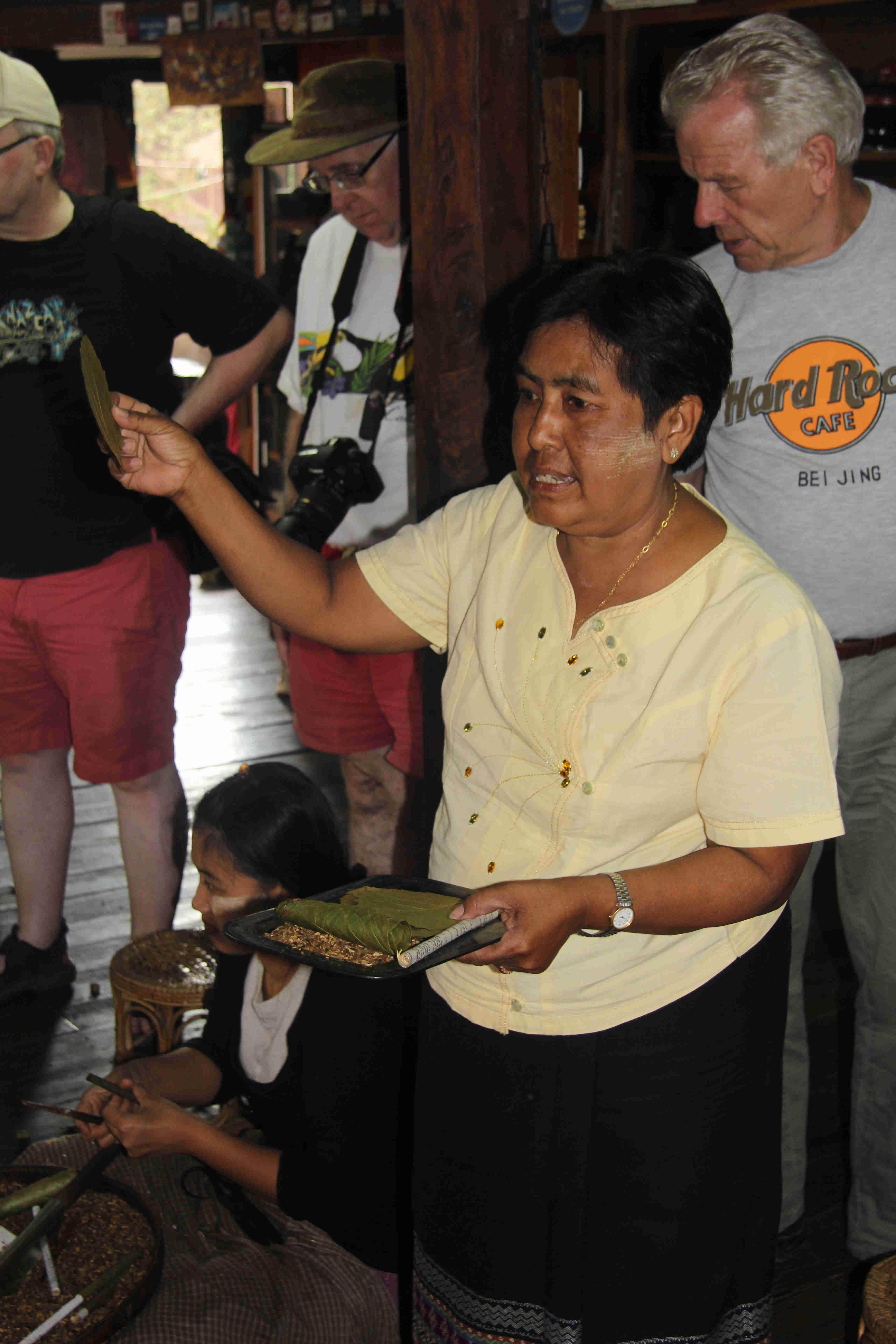Besøk på lokal tobakksfabrikk Nan Pan Inlay i kanalen ved Inle sjøen. (Foto: Terje Pettersen-Dahl, 6/3 2013).