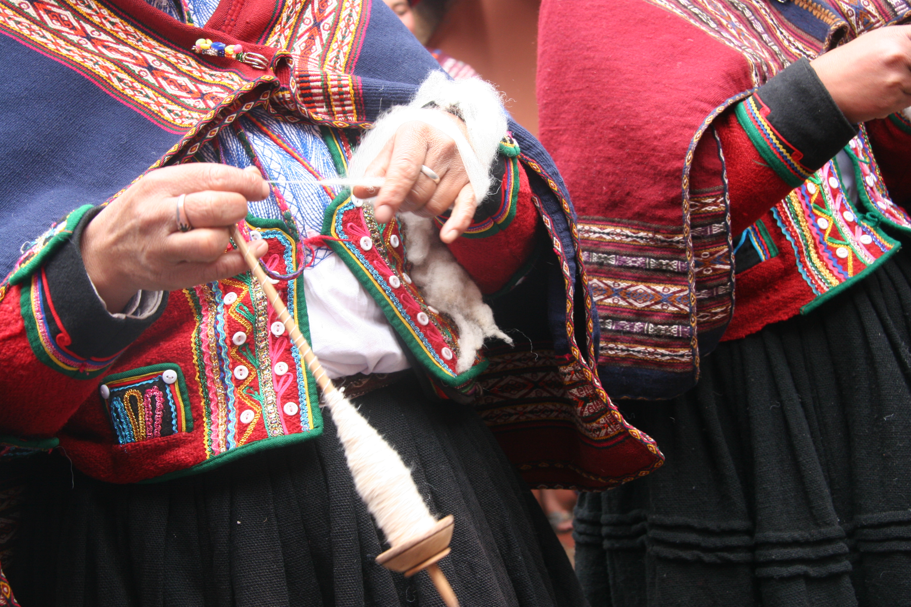 Spinnng av tråd på en vevstue i Chinchero. (Foto: Terje Pettersen-Dahl, 10/3 2008).