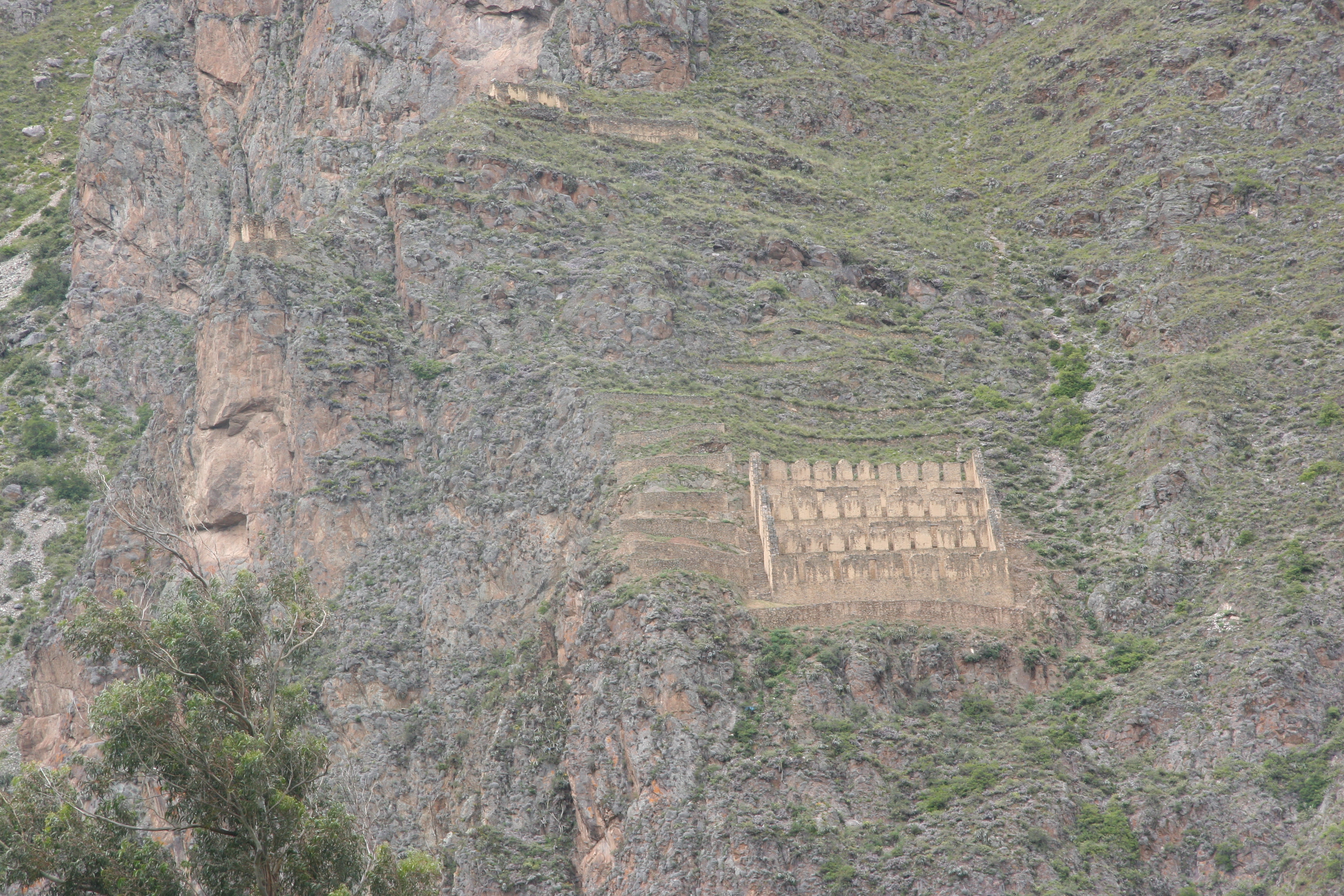 Vakten og lagerhus i fjellet ved inkatempelet i Ollantaytambo. (Foto: Terje Pettersen-Dahl, 10/3 2008).
